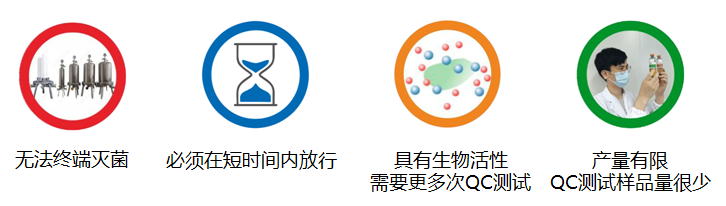 與傳統(tǒng)藥物相比前沿治療藥物(ATMP)在研發(fā)及生產(chǎn)過(guò)程中的產(chǎn)品質(zhì)量控制面臨諸多挑戰(zhàn),例如無(wú)法終端滅菌、傳統(tǒng)藥典中無(wú)菌檢查方法檢測(cè)周期長(zhǎng)、具有生物活性需要多次QC測(cè)試、產(chǎn)量有限QC測(cè)試樣品量少等。