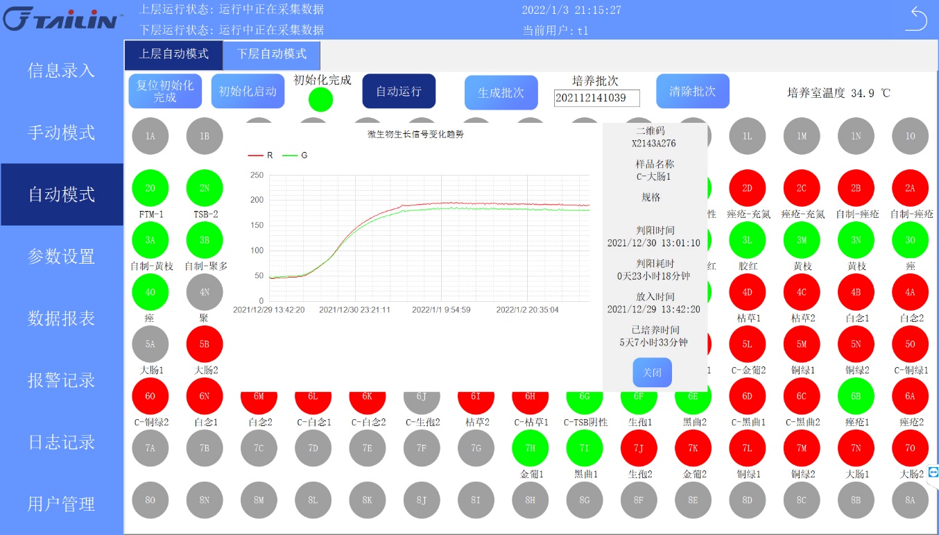 報(bào)告中指出,十三五國(guó)家重大科技專(zhuān)項(xiàng)成果全自動(dòng)無(wú)菌培養(yǎng)系統(tǒng)AST-300和AST-80是專(zhuān)用于藥品快速無(wú)菌檢查的智能化儀器,由恒溫培養(yǎng)箱體,自動(dòng)化檢測(cè)單元、培養(yǎng)容器、微生物生長(zhǎng)信號(hào)感應(yīng)器等組成。其原理是基于微生物呼吸作用產(chǎn)生的CO?,引起培養(yǎng)容器上感應(yīng)器顏色的改變,通過(guò)設(shè)備的視覺(jué)相機(jī)連續(xù)掃碼感應(yīng)器圖像及對(duì)應(yīng)二維碼,由計(jì)算機(jī)系統(tǒng)進(jìn)行視覺(jué)分析并轉(zhuǎn)換為生長(zhǎng)信號(hào),根據(jù)變化趨勢(shì)分析及專(zhuān)用的算法來(lái)判斷無(wú)菌檢查結(jié)果。